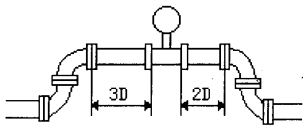 再將兩臺口徑為φ50mm和φ40mm高爐煤氣流量計配裝整流器后,分別安裝在φ80mm工以管道上,且儀表上游尉為一個平面內兩個90°彎頭,變徑整流器前端與*二個90°彎頭距離為3倍工藝管內徑長段,進行水標定,工藝圖如圖3,實驗數據見表2