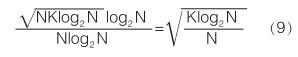 由前文可知 FFT 算法時間復(fù)雜度為 O ( Nlog 2 N )。 隨著信號長度 N 的增長,兩者的時間復(fù)雜度也會發(fā)生變化。 采用時間復(fù)雜度的數(shù)量級的比值來刻畫這種變化: